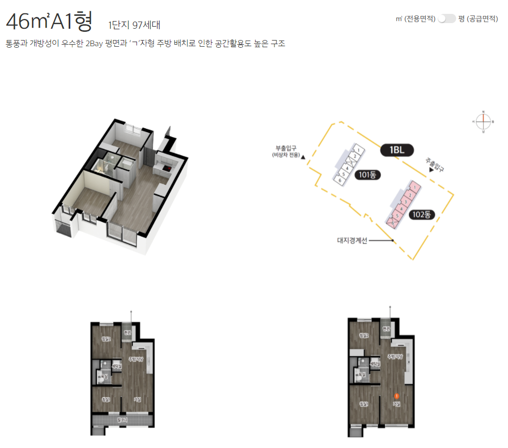 1) 46A1 : 4.56억~4.96억 (110만원)