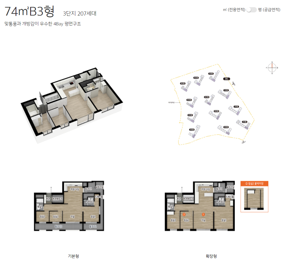 4) 74B3 : 5.90억~6.45억 (310만원)