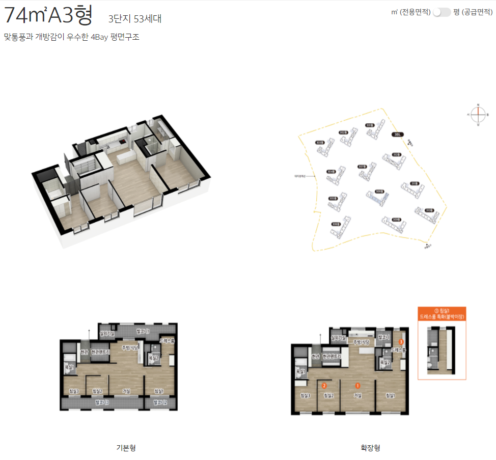 3) 74A3 : 6.00억~6.53억 (380만원)