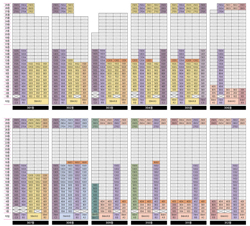 [안양 어반포레 자연앤 e편한세상 동.호수배치도]